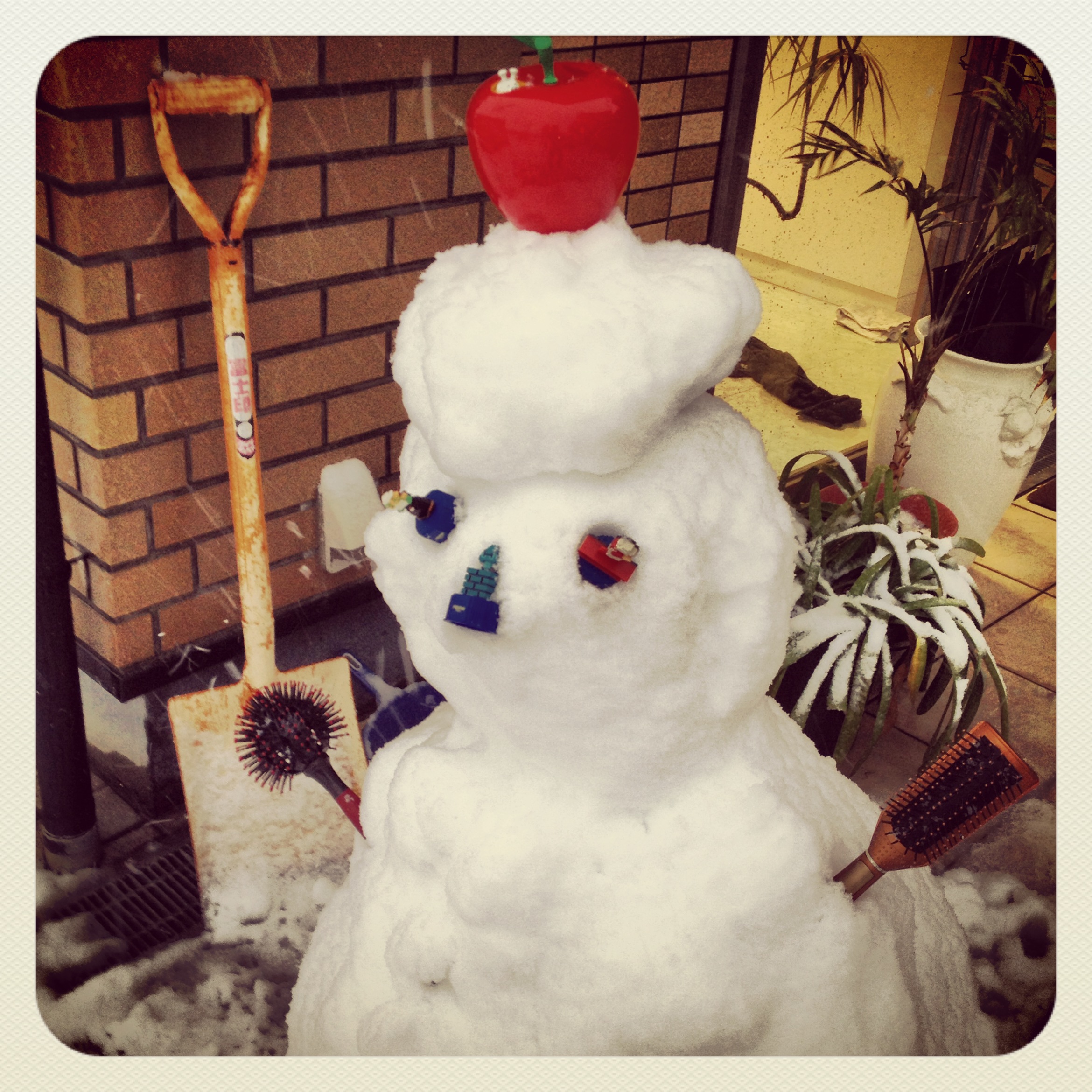 有り合わせで目やら手やら付けて完成です。(注)スコップは重くて手になりません