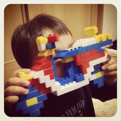 レゴ的なブロックを頂いたので2時間くらい集中して造ったバイク。