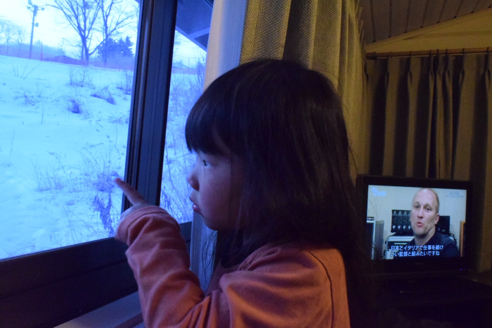 新幹線に乗りつつ、大宮で「はやぶさ」を見て感動する長男。